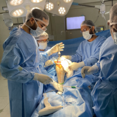 During Knee Replacement Surgery, surgeons cut damaged cartilage and bone from your thighbone, shinbone, and kneecap and replace it with an artificial joint made of high-grade plastic & metal.